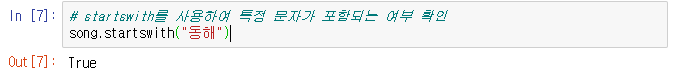 3. 슬라이싱, startswith, in을 통해 문자열에 '동해'가 있는지 확인하기
