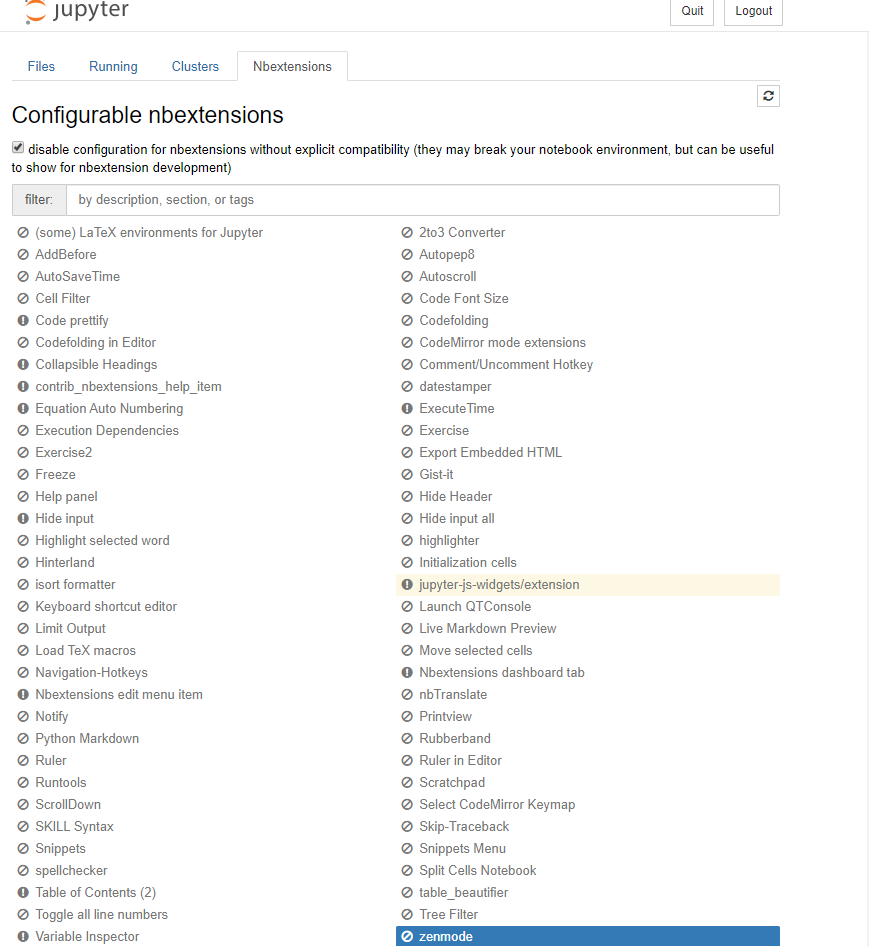 - Nbextensions 탭을 클릭하고 들어가서 옵션 체크해야 함