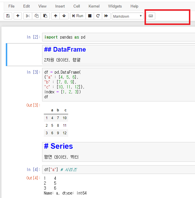 - Shift + Enter : 셀이 실행이 되고 커서가 다음셀로 이동